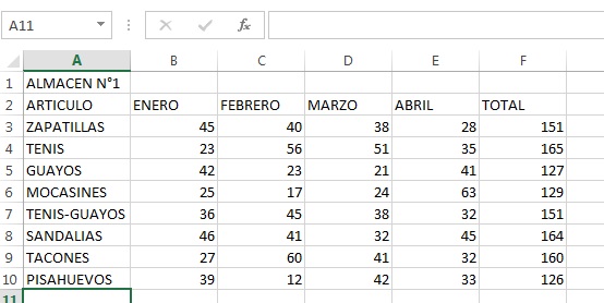 Digitar los siguientes datos en la hoja de cálculo y llame a ese archivo ALMACEN1 en la hoja de Cálculo .