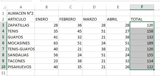 Se tienen las ventas de dos almacenes de una misma empresa en dos archivos diferentes en una hoja de cálculo, en la cual se tienen los datos de las ventas de los diferentes artículos hechas en los primeros 4 meses. Se necesita encontrar el consolidado de las ventas realizadas por ambos almacenes y que queden en otro archivo que sea el resultado de la consolidación. Digitar los siguientes ALMACEN2