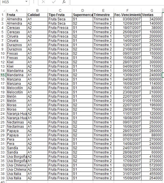 5. ¿Cuales son las ventas totales de cada Fruta por Calidad ? La hoja donde se colocan debe llamarse ventasxfrutaxcalidad.