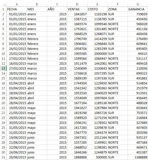 - ¿En qué meses la ganancia es mayor en la zona norte que en la sur y cuál es el valor máximo observado de ganancia para ese rango de tiempo?