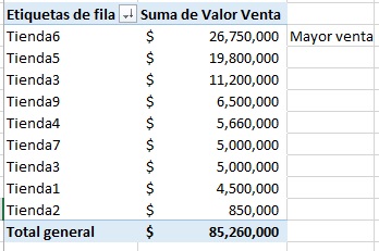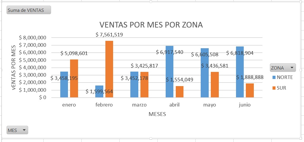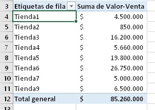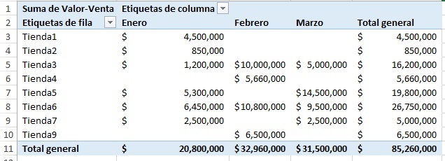2) VALOR DE VENTAS POR TIENDA POR MES