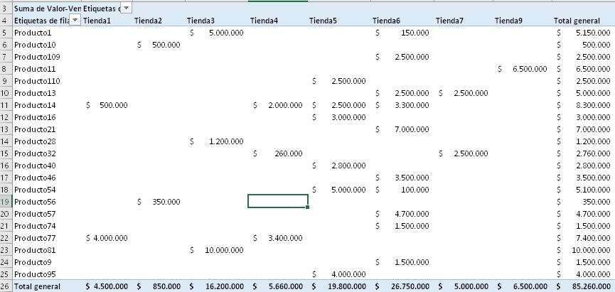 5) VENTAS POR PRODUCTO POR TIENDA?