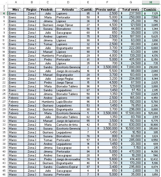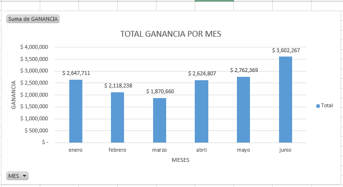 3) VALOR TOTAL DE VENTAS X PRODUCTOX MES